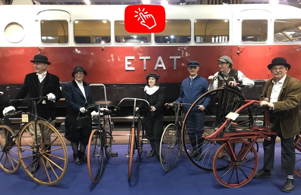 « Musée vivant » vélocipédique dans le temple de l’automobile de collection : déambulations, présentations, démonstrations, initiations, …